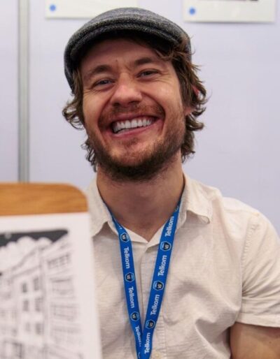 Tyler Pike is a Kommetjie based comic artist, illustrator and live caricaturist at events. He used to doodle in his exercise books a lot instead of paying attention in Maths class.